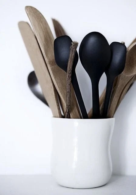 Purchase some simple items to give your space a new look. Keep the colour palette neutral and timeless. Match utensils and have them on display for easy access.